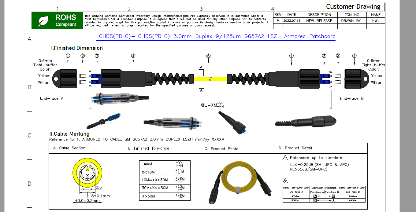250mtr LC-LC Round Armoured Cable 3mm SM Yellow – Armoured cable -with LC Uniboot Switchable inc PDLC covers